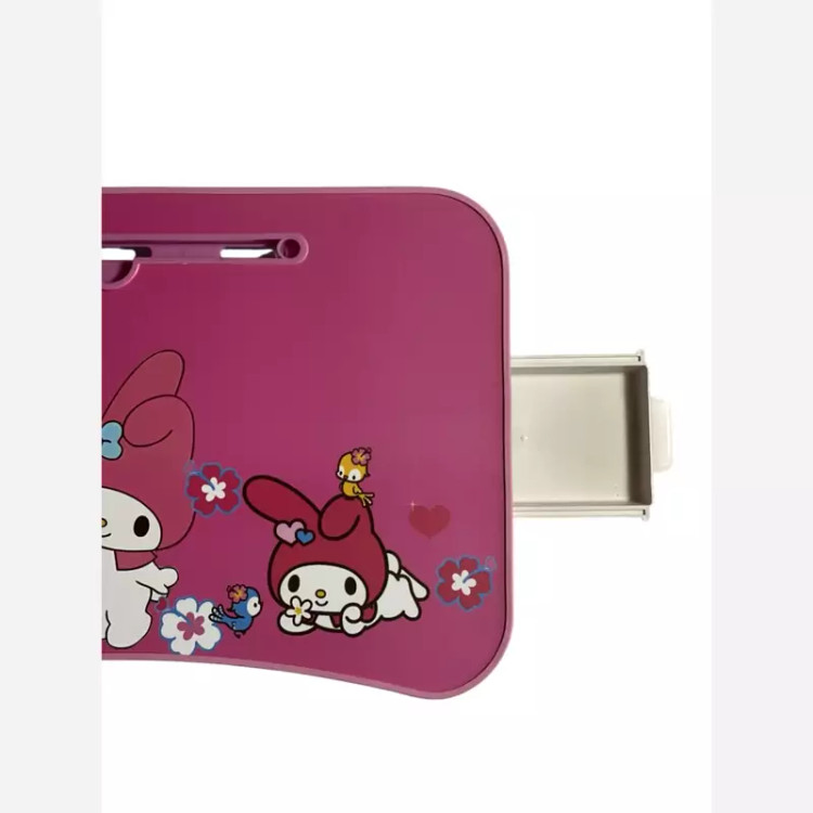 صفحه و ابعاد: صفحه ی این میز از ملامینه فشرده ضد خش ساخته شده که خیال شما را بابت خط و خش روی میز هنگام استفاده از آن راحت می کند. دور صفحه با نوار گرانول نرم پوشانده شده که علاوه بر ایجاد جذابیت بصری، از آسیب دیدن شما در برخورد با لبه های میز نیز جلوگیری می کند. جلوی میز تحریر زمینی کودک مدل دیزنی یک انحنای ارگونومی تعبیه شده که راحتی استفاده از این محصول را دوچندان می کند. بر روی صفحه میز یک جالیوانی با عمق 3.5 و قطر 7.5 سانتی متر تعبیه شده است. از دیگر امکانات این محصول عالی وجود یک شیار برای قراردادن تبلت، موبایل، کتاب و … و یک جاقلمی اشاره کرد. لازم به ذکر است صفحه این محصول دارای ابعاد 60*40 سانتی متر می باشد و ارتفاع میز نیز در حال استفاده 28 سانتی متر از زمین می باشد. پایه ها: پایه های میز تحریر زمینی کودک مدل دیزنی به صورت لوله ای تاشو است که نتیجه آن تحمل وزن بالا و انعطاف میز می باشد. همچنین نوع رنگ پایه، الکترواستاتیک کوره ای می باشد که کمترین رنگ رفتگی را در برخورد ها دارد. قسمت پلاستیکی قرارگرفته روی پایه ها مانع از سر رفتن میز بر روی زمین می شود