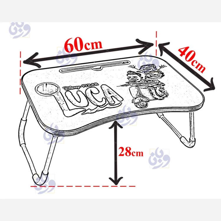 صفحه و ابعاد: صفحه ی این میز از ملامینه فشرده ضد خش ساخته شده که خیال شما را بابت خط و خش روی میز هنگام استفاده از آن راحت می کند. دور صفحه با نوار گرانول نرم پوشانده شده که علاوه بر ایجاد جذابیت بصری، از آسیب دیدن شما در برخورد با لبه های میز نیز جلوگیری می کند. جلوی میز تحریر زمینی کودک مدل دیزنی یک انحنای ارگونومی تعبیه شده که راحتی استفاده از این محصول را دوچندان می کند. بر روی صفحه میز یک جالیوانی با عمق 3.5 و قطر 7.5 سانتی متر تعبیه شده است. از دیگر امکانات این محصول عالی وجود یک شیار برای قراردادن تبلت، موبایل، کتاب و … و یک جاقلمی اشاره کرد. لازم به ذکر است صفحه این محصول دارای ابعاد 60*40 سانتی متر می باشد و ارتفاع میز نیز در حال استفاده 28 سانتی متر از زمین می باشد. پایه ها: پایه های میز تحریر زمینی کودک مدل دیزنی به صورت لوله ای تاشو است که نتیجه آن تحمل وزن بالا و انعطاف میز می باشد. همچنین نوع رنگ پایه، الکترواستاتیک کوره ای می باشد که کمترین رنگ رفتگی را در برخورد ها دارد. قسمت پلاستیکی قرارگرفته روی پایه ها مانع از سر رفتن میز بر روی زمین می شود